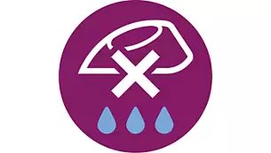 Systém Drip-stop zabraňuje úniku tekutiny zo žehličky, aby pri akomkoľvek nastavení teploty nevznikali škvrny spôsobené kvapkami vody a aby ste mohli žehliť bez obáv.