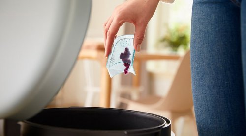 Odstránené žmolky z tkanín sa koncentrujú v zásobníku prístroja, ktorý je vyberateľný a dá sa ľahko vysypať do odpakového koša.