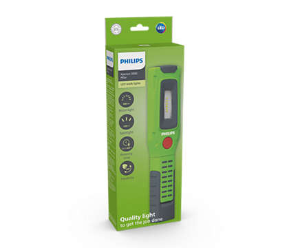 Výkonné ručné svietidlo LED, Dve svetlá: priestorové + bodové, Vďaka silnému jasnému svetlu, protišmykovej úprave, ľahkému prevedeniu a všestrannému využitiu je Philips Xperion 3000 Pillar vynikajúce bezdrôtovým pracovným svietidlom LED pre každodenné použitie. Súčasťou je aj praktické bodové svetlo, ktoré vám pomôže ožiariť stiesnené priestory.500 lm Boost / 200 lm Eco,120 lm Spotlight, Výdrž batérie: 2,5 h (Eco: 8 h),Otočná hlava o 180 °