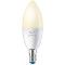 Užívajte si ešte viac pohodlia v každodennom živote so stmievateľnou šikovnou LED žiarovkou WiZ s päticou E14. Žiarovka svieti teplým bielym svetlom a umožňuje plynulé stmievanie pomocou aplikácie. Nastavujte si automatické zapínanie a zhasínanie svetiel vo zvolenú dobu pomocou svojho smartfónu. Ovládajte svoje svetlá hlasom a majte ich pod kontrolou, aj keď nie ste doma. WiZ sa pripája priamo do vašej Wi-Fi siete a nie je potrebné žiadne ďalšie zariadenie. 4,8 W