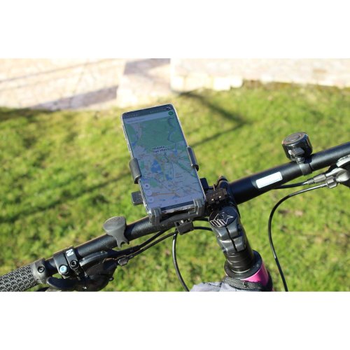 Všetci cyklisti určite ocenia držiak na mobil Phone Holder 2.0, vďaka ktorému budú mať svoj mobilný telefón stále na očiach aj pri vychádzke. Držiak je vyrobený z ABS plastu a jemnej peny, ktorá bráni prenášaniu otrasov na telefón počas jazdy. Mobil sa do držiaka umiestni pomocou klipu, ktorý je flexibilný. Phone Holder 2.0 je vhodný pre telefóny so šírkou 6,5 - 9,5 cm, s uhlopriečkou 5 - 7 in (12,7 - 17,7 cm) as maximálnou hrúbkou 1,2 cm. Váš mobil v držiaku môžete otáčať o 360 ° a mať ho na riadidlách umiestnený vodorovne aj zvisle. Váha samotného držiaka je iba 130 g. Použitie: Držiak pripevnite na riadidlá pomocou plastového stojanu, použite gumovú vložku proti odreniu riadidiel a zoskrutkujte priloženými skrutkami. Otočným kolieskom na zadnej strane držiaka si nastavte požadovaný uhol, pod ktorým chcete mobil umiestniť. Teraz už len stlačte plastové tlačidlá OPEN po stranách, vložte telefón a ľahkým zatlačením na displej klip zocvaknite. Pokiaľ vám nevyhovuje výška držiaka, dole na spodnej strane ju tlačidlom môžete nastaviť.