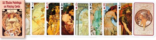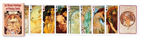 Hracie karty francúzskeho typu s motívom ilustrácií Alfonsa Muchu.