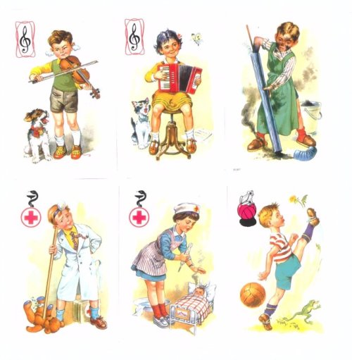 Hracie karty pre hru Čierny Peter s veselými obrázkami detí.