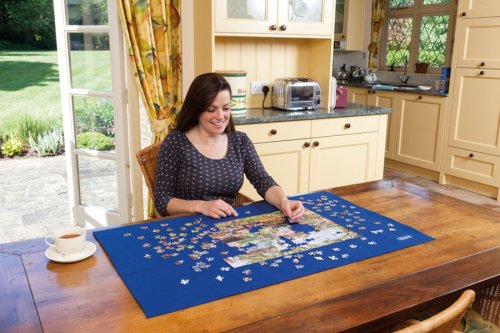Vezmite si rozskladané puzzle so sebou, s rolovacou podložkou to nebude problém! Podložka pod puzzle vhodná pre puzzle do veľkosti 90 x 50 cm (zodpovedá 1.000 dielikom väčšiny výrobcov). Koberček na puzzle je ideálny na úsporu miesta a bezpečné uchovanie nedokončeného aj hotového obrázku. Podložka zaistí bezpečné uchovanie alebo transport vášho puzzle. Balenie obsahuje kartónový tubus, filcovú podložku v modrej farbe o rozmere 100 x 60 cm (zodpovedá veľkosti 1.000 dielkové puzzle značky Piatnik) a dva pásiky na pevné uchytenie. UPOZORNENIE: V prípade zakúpenia koberčeka na skladanie puzzle iných značiek odporúčame overiť rozmery zloženého puzzle. Údržba filcovej podložky: Podložku je možné žehliť na najnižšiu teplotu najlepšie cez tenkú tkaninu (utierku). Ručné pranie v studenej vode, nežmýkať a nesušiť v sušičke.
