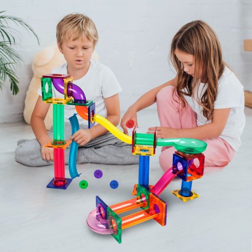 Obsahuje 50 magnetických stavebných dielikov. Ponúka guličkovú dráhu s kĺbmi a lievikmi, kde guličky prechádzajú zákrutami, prekážkami a šmykľavkami. Podporuje inžinierske zručnosti, objavovanie a kreatívne experimentovanie. Poskytuje zábavu aj vzdelávací STEM skúsenosť.