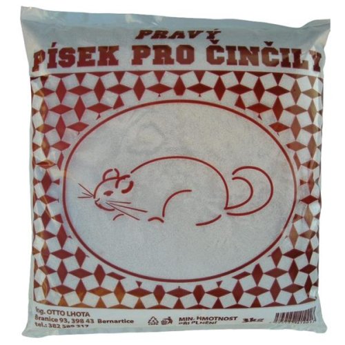 Jemný kúpací piesok, ktorý odstraňuje nečistoty a mastnoty. Činčily majú veľmi jemnú a hustú srsť. Pre správnu starostlivosť o kožu a srsť týchto zábavných maznáčikov je nutný kúpeľ v jemnom piesku. Misku s vrstvou 3 - 5 cm postavte 1 x denne na 30 minút do ubikácie. Po kúpeli misku vyberte a zakryte, aby nedošlo k znečisteniu piesku. Pred ďalším vložením do klietky je dobré zbaviť piesok nečistôt preosaním cez sitko. Nezabudnite na pravidelnú výmenu piesku. Pri výmene umyte misku.