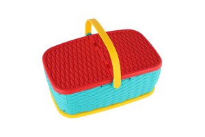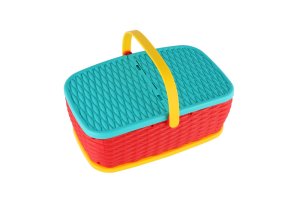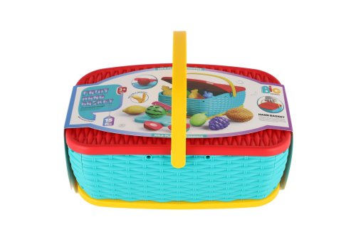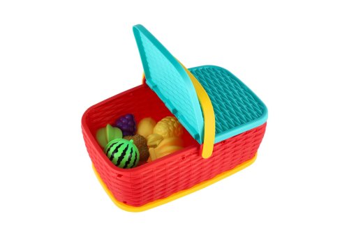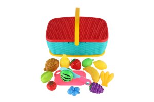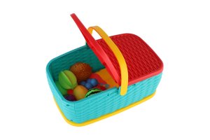 Hurá na piknik! Farebný plastový košík plný ovocia a zeleniny, ktoré si deti môžu „nakrájať“ pomocou bezpečného plastového noža. Jednotlivé kúsky sú spojené suchým zipsom a je možné ich znova a znova spájať. Skvelá hračka pre rozvoj jemnej motoriky, fantázie aj hry na kuchárov. Rozmer balenia: 28 × 20 cm Vhodné pre deti od 3 rokov