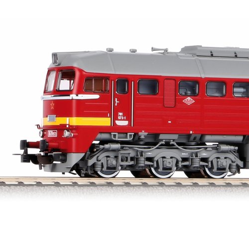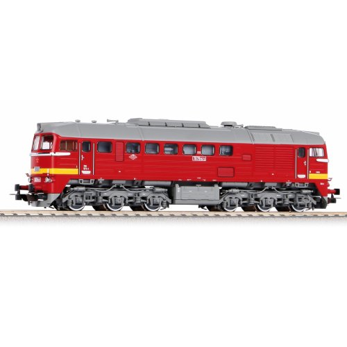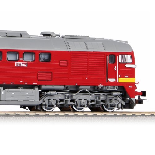 Atraktívny model šesťnápravovej dieselelektrickej lokomotívy T 679.1 „Sergej“ Československých štátnych dráh, slúžiaci najmä na ťahanie ťažkých nákladných vlakov. Typ M62 patril medzi vôbec najvýkonnejšie stroje veľmi hojne zastúpené v krajinách východného bloku. Vyrábané boli až do prelomu tisícročia a ešte aj dnes ich možno vidieť v aktívnej službe pri Maďarských štátnych železniciach. Modelu na prvý pohľad dominuje mohutný a podrobne spracovaný podvozok so starostlivo stvárnenými detailmi zavesenia a pneumatického systému bŕzd. Výlisok vysoko posadenej karosérie dôsledne zachytáva mriežky ventilácie, veka a dvierka obslužných zariadení i jemné línie krytia. Charakteristickými postrannými okienkami možno nazerať do členitého intieriéra strojovne. Prvotriedne lakovanie dáva pútavo vyniknúť najmä mnohým chrómovaným prvkom na čelách. Značenie a prevádzkové detaily sú vďaka najkvalitnejšej potlači dokonale ostré a jasne čitateľné. Úprava strechy verne odráža skutočné stroje, a neskoršie série sú tak ľahko rozoznateľné podľa prítomnosti skrine tlmiča výfuku. Na účely vystavenia vo vitríne je možné model doplniť detailmi tiahlového ústrojenstva, ktoré sú súčasťou balenia. Pohon zaisťuje výkonný motor s rozmernými zotrvačníkmi a moment je prenášaný prostredníctvom dvojice uhlopriečne usporiadaných bandážovaných kolies na vnútorných nápravách, poháňaná je však hneď štvorica dvojkolesí. Mohutný a precízne zhotovený podvozok potom významným dielom prispieva k mimoriadnym jazdným vlastnostiam modelu a pomáha autenticky sprostredkovať parametre charakteristickej predlohe. Trojica svetiel na čelách sa rozsvieti a mení farbu v závislosti od smeru jazdy. Osvetlením je ďalej vybavená ako kabína rušňovodiča, tak aj strojovňa. Individuálne riadenie všetkých svetiel je potom možné dosiahnuť vstavaním digitálneho ovládania. Model je možné rozšíriť zvlášť určeným digitálnym dekodérom so zvukovým modulom a reproduktorom. Hlavné vlastnosti: šesť náprav motor s dvojicou zotrvačníkov dvojice bandážovaných hnacích kolies svetla s prepínaním farby podľa smeru jazdy osvetlenie interiéru rozhrania PluX22 podľa NEM 658 šachta podľa NEM 362 s kinematikou krátkeho spriahla Dokumenty: Všeobecné informácie k T V 200 ( M62) (DE, EN, FR, PL) návod na obsluhu a zoznam náhradných dielov modelu č. 52814 (DE, EN, FR, SK)