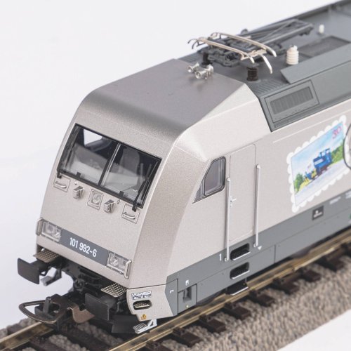 Prepracovaný model elektrickej lokomotívy BR 101 vydaný v limitovanej sérii pri príležitosti 30. výročia založenia spoločnosti PIKO Spielwaren GmbH. Ponúka atraktívne lakovanie a potlač, vďaka ktorému sa bude stroj vynímať ako na koľajisku, tak vo vitríne. Vo verne stvárnenej, prísne aerodynamickej karosérii s bočnými krytmi podvozku vynikajú do najmenších podrobností spracované detaily madiel, stupienkov a plošiniek. Výlisok strechy nezabúda na žiadnu maličkosť a zdobia ho samozrejme obrátene orientované jednoramenné pantografy typické pre tento typ lokomotív . Predobraz modelu sa preslávil svojim výkonom a spoľahlivosťou, pre tieto vlastnosti sa mu prezýva „žrút kilometrov“. Miniatúra ide úplne v stopách svojej predlohy a ponúka výkonný motor opatrený hneď dvoma zotrvačníkmi zaisťujúcimi plynulé zmeny rýchlosti. Moment je prenášaný uhlopriečne usporiadanými bandážovanými kolesami na vnútorných nápravách podvozku, poháňané sú však všetky štyri nápravy. Verne stvárnené je funkčné smerové osvetlenie s trojicami svetlometov na čelách, farba svetiel sa mení v závislosti od smeru jazdy. Atraktívne osvetlená je tiež kabína stroja, ktorá je pripravená na zabudovanie digitálneho ovládania umožňujúceho prepínanie medzi stropným svetlom a osvetlením riadiaceho pultu. Model je možné rozšíriť zvlášť určeným digitálnym dekodérom so zvukovým modulom a reproduktorom. Hlavné vlastnosti: analógové ovládanie napájania DC štvorica náprav motor s dvojicou zotrvačníkov dvojice bandážovaných hnacích kolies svetla s prepínaním farby podľa smeru jazdy osvetlenie kabíny rušňovodič hodvojice pantografov rozhrania PluX22 Dokumentácia: brožúra k jubilejným modelom lokomotív BR 101 „Pozdrav zo Sonnebergu“ (DE)brožúra k jubilejným modelom lokomotív BR 101 „Pozdrav zo Sonnebergu“ (EN)všeobecné informácie k modelom lokomotív BR 101 série Expert (DE, EN, FR č. 51110 (DE, EN, FR, NL) Vlog Dr. Ren é F. Wilfera k príležitosti 30. výročia založenia PIKO Spielwaren GmbH.