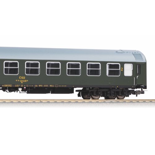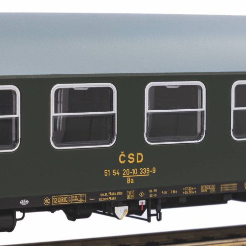 Štvornápravový oddielový osobný vagón Ba 2. triedy typu UIC-Y Československých štátnych dráh. Precízny výlisok karosérie spolu s lakovaním zachytáva aj najmenšie detaily okenných rámov a dverí. Strecha vozidla je stvárnená starostlivo, so všetkými podrobnosťami výdychov aj klapiek vzduchotechniky. Čelá nesú verne reprodukované gumové návalky. Dokonale priezračnými oknami je možné nazerať do dôkladne spracovaného interiéru. S maximálnym dôrazom na autenticitu bol zhotovený aj podvozok, na ktorom je možné pozorovať podrobne spracované tiahla a valce obslužných zariadení. Vozidlo je samozrejme pripravené na dovybavenie krátkymi spriahadlami, aby mohlo byť dokonale prispôsobené na zostavovanie dlhých súprav. Ponúka tiež možnosť ľahkého osadenia zvlášť určeným LED modulom interiérového aj koncového osvetlenia a ovládacím dekodérom. Pre reprodukciu dobových súprav je možné obzvlášť odporučiť niektorú z dieselových lokomotív T679.1 „Sergej“ (č. 52819 a 52814), alebo elektrických lokomotív S 499.1 „Laminátka“ (č. 51380 a 51382), ktoré nájdete v Hlavné vlastnosti:štvorica nápravmožnosť dovybaviť osvetľovacími modulmi a ovládacím dekodéromšachta podľa NEM 362 s kinematikou krátkeho spriahla Dokumentácia:návod na obsluhu a zoznam náhradných dielov modelu č. 58553 (DE, EN, FR, NL)