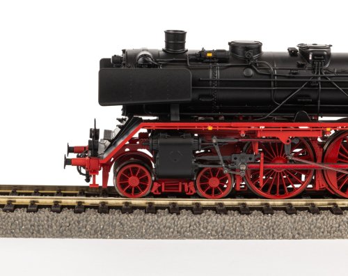 Parná lokomotíva radu BR 03 je novinkou roku 2024. Rovnako ako originál má model štyri veľké predné kolesá, zodpovedajúce reflektory, správne stvárnený rám a verne prevedené klátikové brzdy. Celkový dojem dopĺňa ostro kontúrovaná potlač a krátka tabuľka s označením lokomotívy. Vďaka modernému rozhraniu PluX22 je možné model jednoducho dodatočne vybaviť digitálnym dekodérom. Okrem toho je model pripravený aj na dodatočnú inštaláciu zvukového modulu s čo najväčším reproduktorom. Špecifikácia: napájanie DCanalógové ovládanie dĺžka s nárazníkmi 275 mmšachta NEM minimálny rádius 422 mm2 bandážované koladigitálne rozhranie NEM 658 PluX22zvuk – nie, dodatočná montáž zvukového dekodéra PIKO, číslo produktu 56620 vonkajšie osvetlenie - biela/červená svieti v závislosti od 56620 digitálne prepínateľné osvetlenie kabíny a osvetlenie ohniska (s dekodérom PluX22) Hlavné vlastnosti: realistické farebné prevedeniedetailné spracovanieatraktívny design