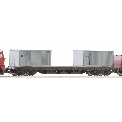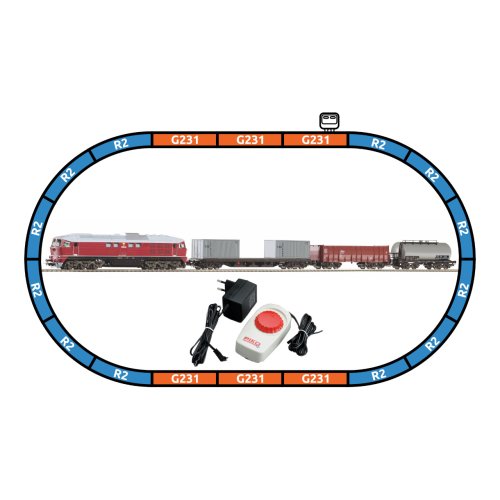 Štartovacia sada skladajúca sa z diesel-elektrickej lokomotívy BR 130 „Ludmilla“, troch nákladných vozidiel, z ktorých jeden je naložený voľne uloženými kontajnermi, predĺženého oválu a analógového ovládania s napájaním. Lokomotívu je možné dovybaviť zvlášť určeným digitálnym dekodérom so zvukovým modulom a reproduktorom. Koľaje s podložím zaisťujú vyššiu odolnosť a životnosť pri opakovanom rozoberaní. Nákup sady je vhodné doplniť o príslušný spotrebný materiál . Plocha základne: 158x88 cmMinimálna konštrukčná plocha: 168x98 cm podložím Táto sada obsahuje: elektrická lokomotíva BR 130 „Ludmilla“ ČSD IV (1 ks)rôzne nákladné vagóny ČSD IV (3 ks)koľaj oblúková R2 s podložím - 55412 (12 ks)koľaj rovná G231 s podložím - 55401 (5 ks)koľaj rovná G2 prípoj pre napájaciu svorku) - 55406 (1 ks)podložie pre napájaciu svorku - 55447 (1ks)napájacia svorka ku koľajniciam analógová - 55270 (1 ks)základný analógový ovládač s napájacím zdrojom - 55003 (1 ks) (DE, EN, F, NL)