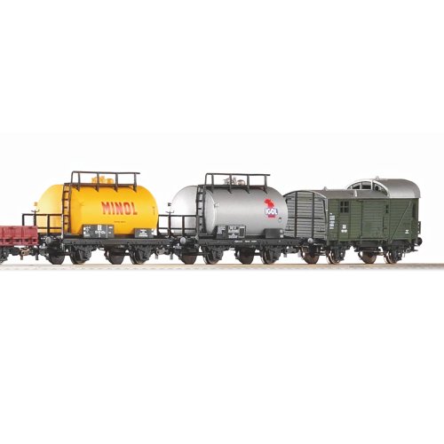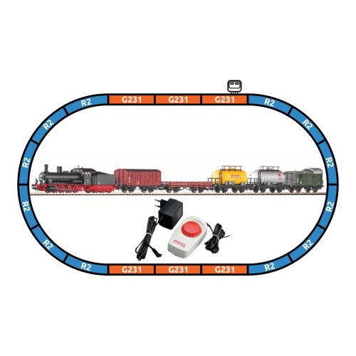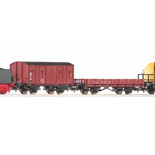 Štartovacia sada skladajúca sa z parnej lokomotívy 0-8-0 BR 55 (G 7.1), piatich nákladných vozidiel, predĺženého oválu a analógového ovládania s napájaním. Lokomotívu je možné dovybaviť digitálnym dekodérom, nadväzne tiež zvlášť určeným zvukovým modulom s reproduktorom, alebo aj výrobníkom dymu. Koľaje s podložím zaisťujú vyššiu odolnosť a životnosť pri opakovanom rozoberaní. Nákup sady je vhodné doplniť o príslušný spotrebný materiál . Plocha základne: 158x88 cmMinimálna konštrukčná plocha: 168x98 cm kinematikou krátkeho spriahladvojice náprav (vagóny)koľaje s podložím Táto sada obsahuje: parná lokomotíva BR 55 (G 7.1) DB III - 57550 (1 ks)rôzne nákladné vozidlá DB III (5 ks)koľaj oblúková R2 s podložím - 5 podložím - 55401 (5 ks)koľaj rovná G231 s podložím (prípoj pre napájaciu svorku) - 55406 (1 ks)podložie pre napájaciu svorku - 55447 (1 ks)napájacia svorka ku koľajniciam analógová - 55270 (1 55003 (1 ks) Dokumentácia: Návod na obsluhu a zoznam náhradných dielov súpravy č. 57123 (DE, EN, F, NL, ITA, E, POL, RUS, CHN, SK)