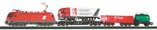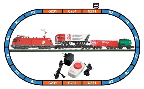 Štartovacia sada skladajúca sa z elektrickej lokomotívy Taurus, troch nákladných vozidiel, z ktorých jeden je naložený voľne uloženým kamiónom, predĺženého oválu a analógového ovládania s napájaním. Lokomotívu je možné dovybaviť digitálnym dekodérom. Koľaje s podložím zaisťujú vyššiu odolnosť a životnosť pri opakovanom rozoberaní. Nákup sady je vhodné doplniť o príslušný spotrebný materiál . Plocha základne: 158x88 cmMinimálna konštrukčná plocha: 168x98 cm jazdyrozhranie NEM 652šachta podľa NEM 362koľaje s podložím Táto sada obsahuje: elektrická lokomotíva Taurus ÖBB V (1 ks)rôzne nákladné vozidlá (3 ks)koľaj oblúková R2 s podložím - 55412 (12 ks)koľaj rovná G231 koľaj rovná G231 s podložím (prípoj pre napájaciu svorku) - 55406 (1 ks) Dokumentácia: Návod na obsluhu a zoznam náhradných dielov súpravy č. 57177 (DE, EN, F, NL, ITA, E, POL, RUS, CHN, CZ, HUN)