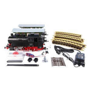 Video je iba ilustračné, zobrazuje príbuzný produkt. Čo je malé, to je pekné, ale čo je väčšie, to je lepšie. A keď vlak, tak gigantický! Modely merítka G od firmy PIKO predstavujú mimoriadne hodnotné hračky, ktoré privádzajú do úžasu fanúšikov techniky naprieč generáciami. Vydajte sa na fantastickú jazdu tými najmohutnejšími strojmi, omráčia Vás silou motorov a váhou poctivej porcie masívneho kovu. Podniknite cestu ku koreňom modelovej železnice a odhaľte pôsobivý odkaz hračkárov starej školy! Vláčiky tohto merítka nie sú len veľké, ale aj nebývalo robustné. Sú navrhnuté a zhotovené tak, aby vydržali hrubšie zaobchádzanie a umožňovali prevádzkovať trať na záhrade aj za nepriaznivého počasia. Otvárajú sa tak široké možnosti nevídaným zážitkom, vypravte vlak na cestu zasneženou krajinou! Nemusíte sa pritom báť zložitého zostavovania a zapájania. Koľajnice a vagóniky je možné ľahko spojiť alebo upratať. Prehľadne značené ovládacie aj napájacie prvky jednoducho pripojíte bez použitia akéhokoľvek náradia. Vysokej životnosti dopomáhajú guličkové ložiská, chrómované diely, vysoko kvalitné, farebne stále plasty a spoľahlivé krytie motorov i zariadení obsluhy. Modely sú vyrábané v súlade s najprísnejšími európskymi štandardmi a predpismi, v domovskej továrni firmy PIKO, v nemeckom Sonnebergu. ∗★∗ Ukážka zvuku zabudovaného zvukového modulu. Štartovacia sada súpravy osobného vlaku skladajúca sa z parnej lokomotívy BR 80 a dvoch osobných vozidiel 2. triedy v prevedení DR. Lokomotíva má chrómované dvojkolesie a je vybavená guličkovými ložiskami. Disponuje osvetlením meniacim sa v závislosti na smere jazdy, analógovo ovládaným zvukom a spínateľným výrobníkom dymu. Zvuk je ovládaný dvojicou traťových spínacích magnetov, ktoré sú súčasťou balenia. Súprava tiež zahŕňa prútik na rozpojenie spriahadiel, slúžiaci na odpájanie a pripájanie vozidiel. Nákup sady je vhodné doplniť o príslušný spotrebný materiál. Plocha základne: 130x130 cm Minimálna konštrukčná plocha: 150 x 150 cm Hlavné vlastnosti: trojica náprav (lokomotíva) zvukový modul výrobca dymu svetla bielej farby s prepínaním podľa smeru jazdy dvojice náprav (vagóny) vhodné aj do exteriéru. modulom a výrobníkom dymu (1 ks)osobný vagón 2. tr. DR III (2 ks)koľaj oblúková G-R1 - 35211 (12 ks)pripojovacia svorka s káblom - 35270 (1 ks)balenie 14 ks koľajových spojok - 35285 (1 ks)základný analógový ovládač - 35006 (1 ks00základný ks) traťový spínací magnet - 35268 (2 ks) palička na rozpojenie spriahadiel - 36039 (1 ks) prípravok na výrobu dymu (10ml) (1 ks) Dokumentácia: návod na obsluhu súpravy č. 37125 (DE, EN, F, NL) obecný návod F, NL)detail rozmerov lokomotívy BR 80 (DE)bezpečnostný list prípravku pre výrobník dymu (EN)špecifikácia napájacieho zdroja (DE, EN, F, NL, E, ITA, SWE, DK)