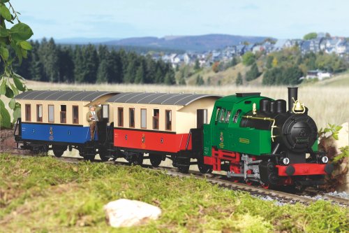 Štartovacia sada súpravy osobného vlaku pozostávajúca z parnej lokomotívy BR 80 a dvoch osobných vozidiel, jedného 2. triedy a jedného 3. triedy. Zaujme farebnosťou a dekorom bavorského dopravcu z čias cisárstva, Königlich Ketschenbacher Kreisbahn. Lokomotíva má chrómované dvojkolesie a je vybavená guličkovými ložiskami. Disponuje osvetlením meniacim sa v závislosti na smere jazdy a je prichystaná na inštaláciu zvukového modulu, výrobníka dymu a digitálneho dekodéra. Súprava zahŕňa prútik na rozpojenie spriahadiel, slúžiaci na odpájanie a pripájanie vozidiel. Sady PIKO G sú vhodné do interiéru aj exteriéru a právom sú označované za „odolné poveternostným vplyvom“. Vyrobené v Nemecku, v súlade s najprísnejšími štandardmi kvality. Nákup sady je vhodné doplniť o príslušný spotrebný materiál . : parná lokomotíva BR 80 KKK III (1 ks)osobný vagón 2. tr. KKK III (1 ks)osobný vagón 3. tr. KKK III (1 ks)koľaj oblúková G-R1 - 35211 (12 ks)pripojovacia svorka s káblom - 35270 (1 ks)balenie 14 ks koľajových spojok - 35285 (1 ks)základný analógový ovládač - 35006 (1 ks) - 35005 (1 ks) palička na rozpojenie spriahadiel - 36039 (1 ks) Dokumentácia: Návod na obsluhu a zoznam náhradných dielov súpravy č. 37130 (DE, EN, F, NL) Všeobecný návod na obsluhu G štartovacích sád PIKO (DE, EN , F, NL)Detail rozmerov lokomotívy BR 80 (DE)Špecifikácia napájacieho zdroja (DE, EN, F, NL, E, ITA, SWE, DK)
