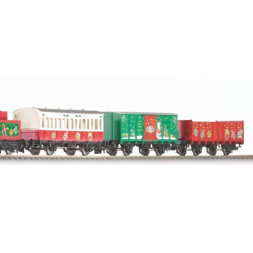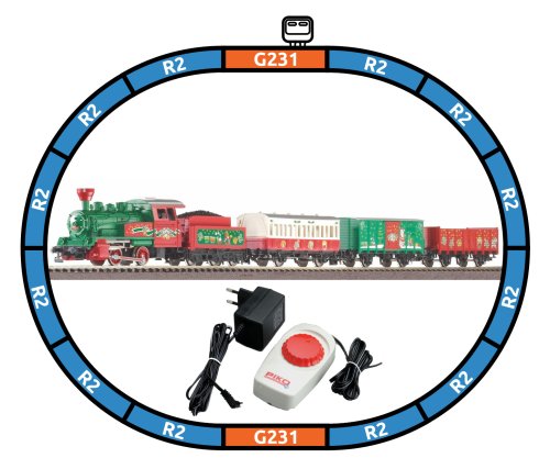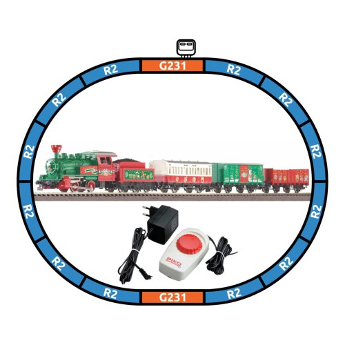 Štartovacia sada špeciálnej, farebnej vianočnej súpravy skladajúcej sa z parnej lokomotívy 0-4-0, jedného osobného vozidla a dvoch nákladných, krytého a otvoreného, základného oválu a analógového ovládania s napájaním. Koľaje s podložím zaisťujú vyššiu odolnosť a životnosť pri opakovanom rozoberaní. Nákup sady je vhodné doplniť o príslušný spotrebný materiál . ks)rôzne nákladné vozidlá (2 ks)koľaj oblúková R2 s podložím - 55412 (12 ks)koľaj rovná G231 s podložím - 55401 (1 ks)koľaj rovná G231 s podložím (prípoj pre napájaciu svorku) - 55406 (1 napájaciu svorku - 55447 (1 ks)napájacia svorka ku koľajniciam analógová - 55270 (1 ks)základný analógový ovládač s napájacím zdrojom - 55003 (1 ks) Dokumentácia: Návod na obsluhu a zoznam náhradných dielov súpravy č. 570 , NL, ITA, E, POL, RUS, CHN, CZ) Nemecká firma PIKO sa zaoberá výrobou modelov lokomotív, vagónov, štart setov, koľajníc a koľajových setov. Klasickým výrobkom, ktorým sa firma PIKO celosvetovo preslávila, je modelová železnica. Modely železnice sú vysoko detailné. Firma PIKO vyrába modely vo veľkostiach H0 (mierka 1:87), G (mierka 1:25), TT (mierka 1:120) a N (mierka 1:160). PIKO modelové železničné výrobky pokrývajú najrôznejšie potreby modelárov. Sú pravidelne testované a oceňované v domácej i zahraničnej tlači.
