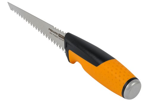 Malá stavebná pílka je maximálne odolná a bezpečná. Puzdro ochráni nielen zuby píly pred stupením, ale aj užívateľov pred nechceným zranením. Trojito brúsená a indukčne kalená čepeľ zostáva dlho ostrá. Vďaka povrchovej úprave 15 cm čepeľ vyniká aj nízkym trením a odolnosťou voči hrdzi a usadzovaniu prachu. Pevný pílový list s ultra ostrým hrotom umožňuje rýchle prerazenie sadrokartónu. Rašpľa na nepilovej strane čepele vyhladzuje hrubé rezy. Rukoväť ručnej píly je opatrená špeciálnym textúrovaným povrchom SoftGrip™, ktorý sa nešmýka v ruke, odvádza vlhkosť a zabraňuje tvorbe pľuzgierov. Dĺžka: 270 mm. Hmotnosť: 180 g.