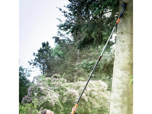 K píle si navyše môžete dokúpiť teleskopickú násadu QuikFit veľkosti L (1000665) alebo veľkosti M (1000666). Vďaka tomu dosiahnete aj na vetvy vo výške. Tieto násady sú kompatibilné so všetkými nástavcami a hlavicami z produktového radu QuikFit.