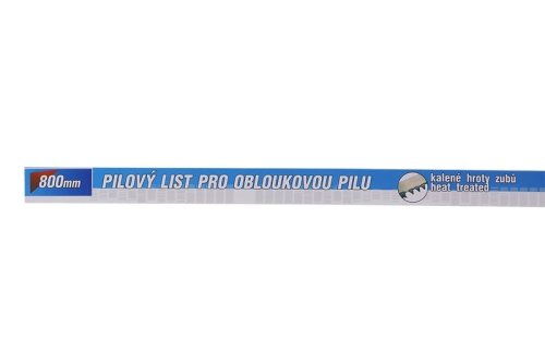 Pílový list pre oblúkovú pílu. Vysokofrekvenčne kalené zuby. Tvrdosť 48-52 HRC. Na rezanie vlhkého, čerstvého dreva. EAN 8590804021254