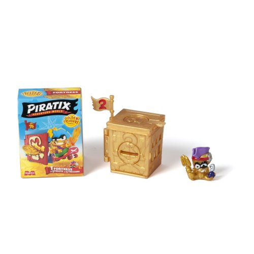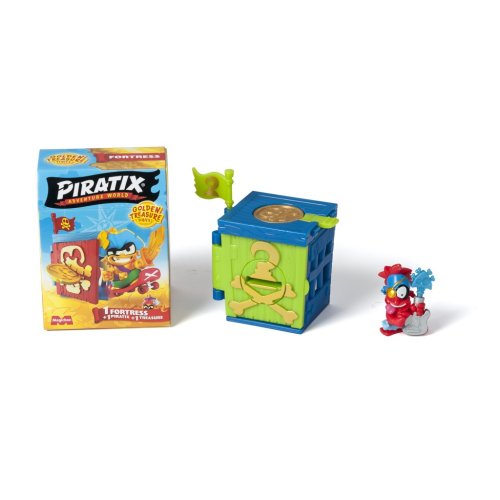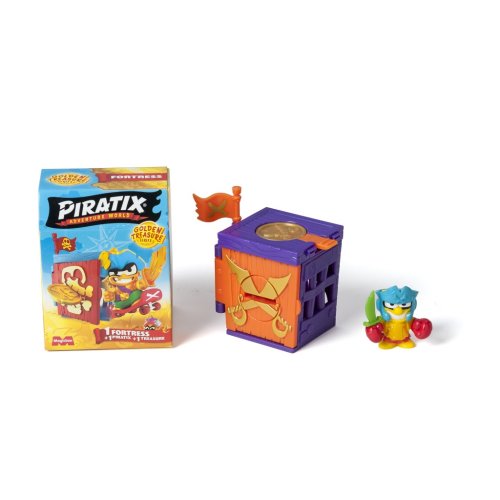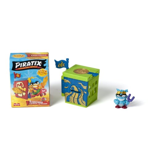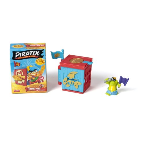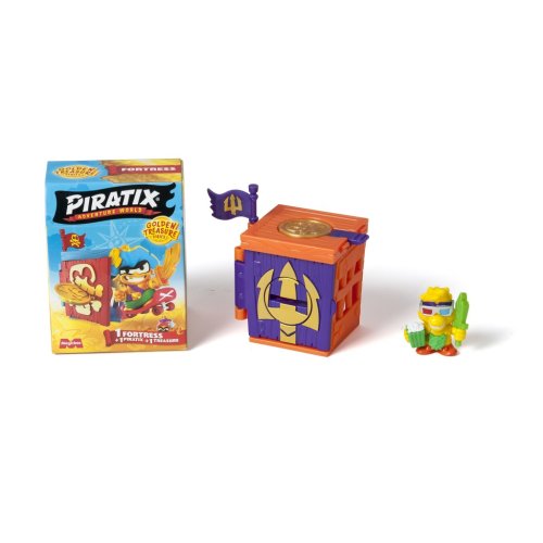 Piratixovci objavili niekoľko skrýš rozosiatych po Ostrove žralokov. V týchto pevnostiach sa ukrývajú tajomstvá a poklady… K dispozícii je 6 designov na zbieranie v rôznych farbách! Použi exkluzívnu mincu na vyriešenie hádanky, ktorá odomkne dvere – až potom sa dostaneš dovnútra! A pokiaľ sa odváži nejaký rival preniknúť: vystreľ ho do vzduchu z katapultu. Dobi ostatné pevnosti súperov a vyves svoju vlajku – budeš mať šťastie a nájdeš zlatú pevnosť? Nezabudni zaspievať naplno: „Pirátsky život, to je život pre mňa!“ Obsah balenia:• 1 prekvapivá pevnosť• 1 prekvapivý Piratix• 1 doplnok• 1 exkluzívna vlajka• 1 exkluzívna pokladová minca