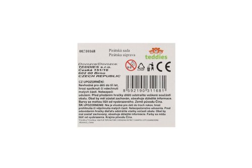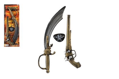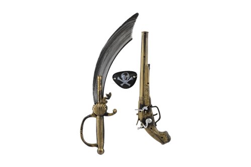 Hor sa na palubu! Táto pirátska súprava premení každého malého dobrodruha na neohrozeného morského vlka. Obsahuje nevyhnutné vybavenie pre každého piráta – meč alebo šabľu, klapaciu pištoľ a pirátsku pásku cez oko. Ideálny doplnok ku karnevalovému kostýmu, na narodeninovú párty alebo k hrám na pirátov. Rozmery balenia 19 x 53 x 5 cm Vhodné pre deti od 3 rokov