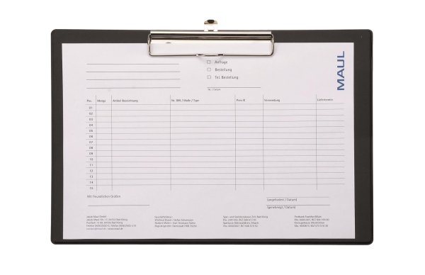 Písacia podložka s klipom Maul - A4 na šírku, čierna
