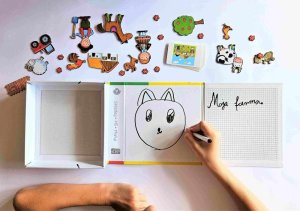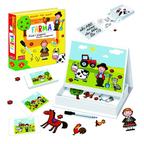 Všestranná hra, ktorá povzbudí deti od 4 do 8 rokov ku kreativite, aranžovaniu, kresleniu a písaniu. Písanie, mazanie a skladanie magnetických obrázkov - všetko v jednej sade. Skvelý tréning písania písmeniek, čísel a množstvo voľnej plochy na maľovanie mazacou fixkou a skladanie scénok z magnetických obrázkov. Rozvíja jemnú motoriku a predstavivosť.