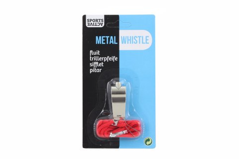 Kovová píšťalka so šnúrou. Rozmery balenia cca 16,5x9x2 cm. Veľkosť píšťalky cca 4 cm. Výrobok nie je hračka.