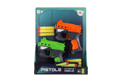 Hravá zábava nielen pre chlapcov! Pištoľ na penové náboje zabaví každého malého pištoľníka. Náboj umiestnite do komory pištole a natiahnite kohútik. Teraz už stačí len dobre zamieriť a vystreliť na svojho protivníka! V balení sú dve pištole, ideálne tak pre teba aj tvojho kamaráta alebo súrodenca. Každý budete mať k dispozícii tri náboje a hra tak môže začať! Veľkosť pištole: 12 cm Rozmer balenia: 22 x 29 x 5 cm Vhodné pre deti od 6 rokov