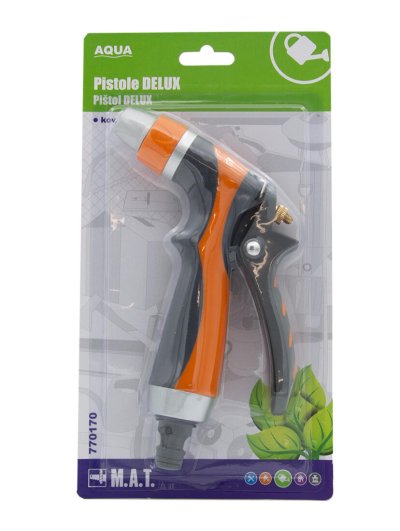 Kovová pištoľ DELUX je ideálnym doplnkom záhradnej hadice.