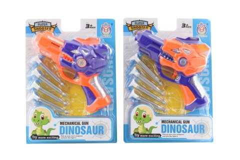 Plastová pištoľ s motívom dinosaura. Balenie obsahuje 4 náboje s prísavkou. Rozmery balenia cca 15,5x21x6 cm. Veľkosť pištole cca 15 cm. Vek 3+