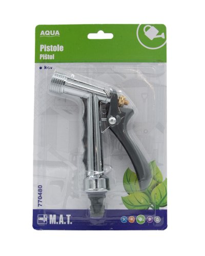 Kovová pištoľ AQUA je ideálnym doplnkom záhradnej hadice.