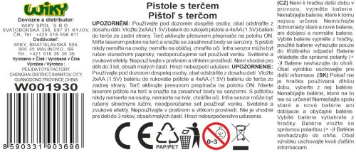 Strieľanie je sprevádzané svetelnými a zvukovými efektmi. Laserová pištoľ nemá žiadne náboje a je vhodná aj pre malé deti.