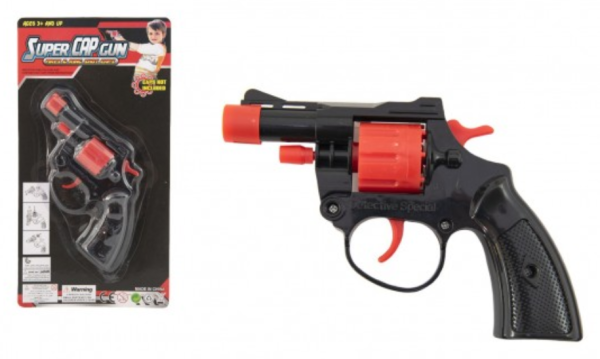 Táto pištoľka vyzerá ako skutočná. Pištoľ kapsula pre všetky malé pištoľníky. Kapslíky dodajú zbrani ten správny zvuk pri výstrele. Veľkosť pištole: 13 cm Vhodné pre deti od 3 rokov. POZNÁMKA: Kapsule (8 rán) nie sú súčasťou balenia.