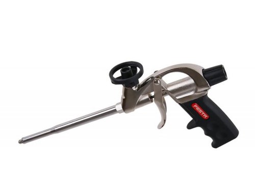 Pištoľ na PU penu. Profesionálna celokovová pištoľ na PU (polyuretánovej) peny. Plynulá regulácia množstva peny, ľahká údržba, závit na uchytenie s teflónovou vrstvou pre ľahšie čistenie, teflónová gulička ventilu, vymeniteľná tryska s možnosťou nasadenia plastovej aplikačnej trubičky na presné nanesenie peny na požadované miesto. Pištoľ pre prácu s pištoľovou PU penou, uľahčuje aplikáciu aj pohodlné a presné dávkovaný PU peny na potrebné miesto. Stavebníctvo, studniarstvo atď. EAN 8590804037149