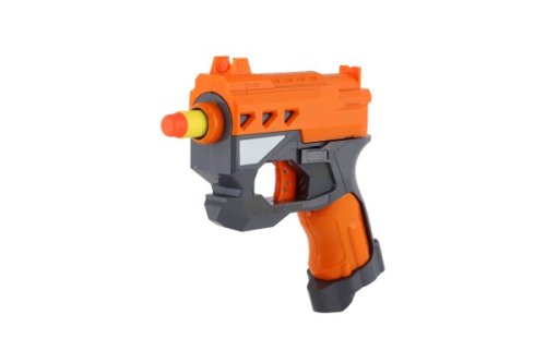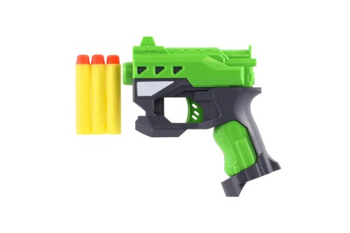 Hravá zábava nielen pre chlapcov! Štýlová pištoľ akurát do ruky je na penové náboje a zabaví každého malého pištoľníka. Umiestnite mäkký penový náboj do hlavne pištole, zatiahnite za nabíjaciu časť, zamierte na cieľ a stlačte spúšť! Rozmer pištole: 12 x 14 cm Vhodné pre deti od 6 rokov