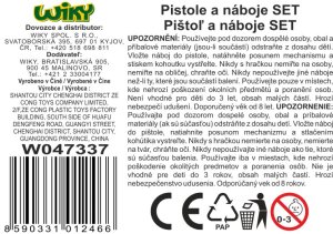 Pištoľ na penové náboje. Veľkosť 17 cm. Balenie obsahuje 5 nábojov. Presné rozmery pištole 16,8x10,5x4,6 cm. Nabitie natiahnutím, jednotlivé strely, výstrel stlačením spúšti.