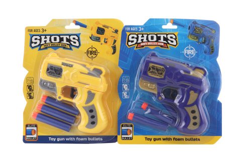 Plastová pištoľ. Súčasťou balenia sú 3 penové náboje. Balené na karte. Rozmery balenia 18x31x4 cm. Veľkosť pištole cca 12x10 cm. Vek 3+