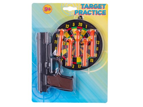 Pištoľ na prísavky 15 cm s terčom 5+ - mix farieb (čierna hlaveň, strieborná hlaveň)