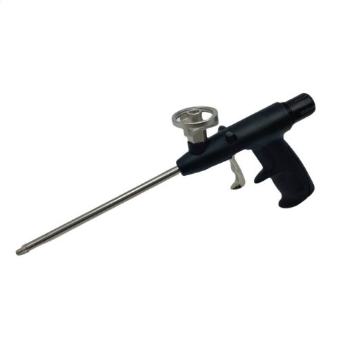 Kovový, antikorózny adaptér pre PU pištoľovú penu a Čistič PU peny s plastovou ergonomicky tvarovanou spúšťou pre presné dávkovanie as odľahčenou rukoväťou.