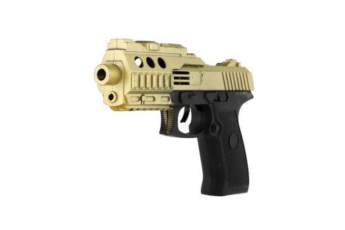 Obľúbenou hračkou všetkých chlapcov je pištoľ. Táto je veľmi bezpečná, nepotrebuje žiadne náboje. Vyznačuje sa iba zvukom zotrvačníka. Rozmery výrobku 20 x 13 cm. Rozmery balenia 16,5 x 26,5 x 4 cm. Vhodné pre deti od 3 rokov.