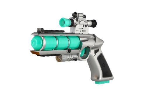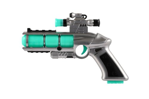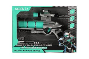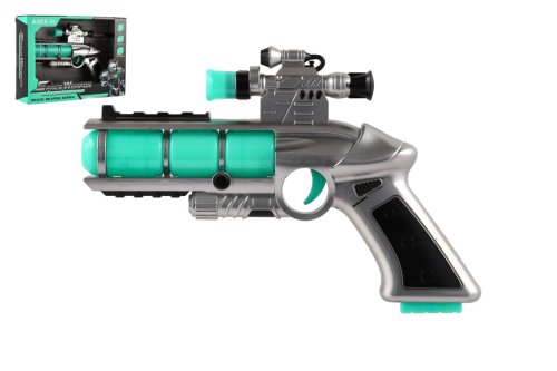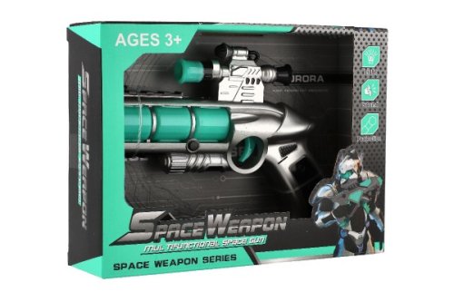 Futuristická plastová pištoľ so zameriavačom poteší všetkých malých vesmírnych bojovníkov. Po stlačení spúšte vydáva realistické svetelné a zvukové efekty, ktoré hre dodávajú na akčnosti. Vďaka kompaktnej veľkosti 20 cm sa dobre drží v ruke aj menším deťom. Po vložení batérií 2x AA vydáva zvuky a svieti. Rozmery balenia 23 x 17 x 6 cm. Vhodné pre deti od 3 rokov.