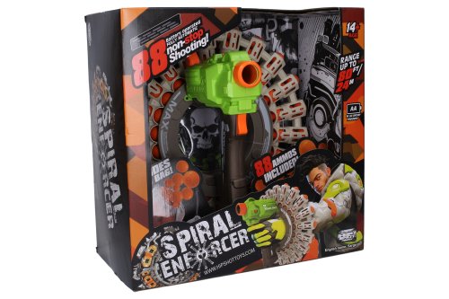 Pištoľ Spiral Enforcer s loptičkami. Rozmery 34,5x34,5x17,5 cm. Súčasťou 88 loptičiek, vrecko na loptičky. 6xAA batérie nie sú súčasťou. Dostrel až 24 m. Náhradné loptičky W049343.