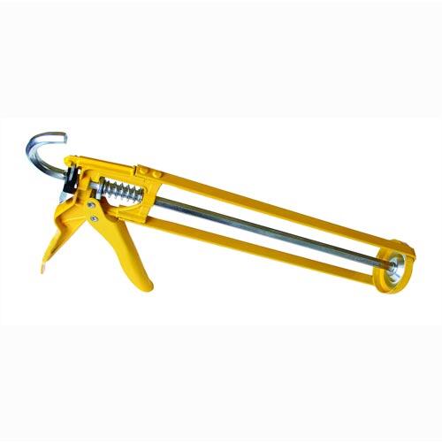 Kvalitná kovová vytláčacia pištoľ so spätným chodom. Spätný chod má funkciu zabrániť po ukončení práce vytekaniu materiálu z kartuše. Hákovité zakončenie pre pohodlné a rýchle nastavenie piestu do požadovanej polohy. Tyč aplikačného piestu má šesťhranný profil pre zvýšené trenie. Používa sa na prácu s tmelom, silikónom, akrylom, atď... Dĺžka celkom 35 cm, úžitková dĺžka pre kartušu 23 cm (310 ml). EAN 8590804025771
