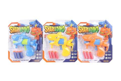 Plastová pištoľ v tvare žraloka na penové náboje. Balenie obsahuje pištoľ a 3 penové náboje s prísavkou. Rozmer balenia cca 17,5 x 21 x 4,5 cm. Vek 6+