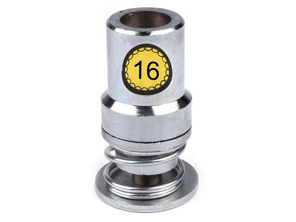 Piston na poťahovanie gombíkov. Každý je označený číslom, ktoré udáva veľkosť gombíka, ktorá sa do pistónu vkladá. Napr. pistónom s číslom 20 potiahnete gombíky veľkosti 20.