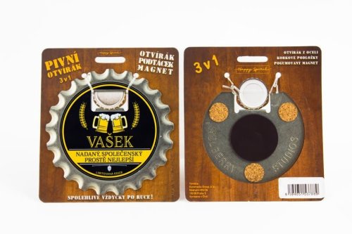 Otvárač v tvare veľkej pivnej zátky je dobrou voľbou pre všetkých milovníkov najtradičnejšieho českého nápoja. Navyše prekvapí aj ďalšími možnosťami. Využite ako podtácok, pripnite na chladničku vďaka magnetu. Potešte mužské ego lichotivými ná pismi . Vďaka širokému výberu najpočetnejších mužských mien a všeobecných rodinných názvov ľahko nájdete ten najvhodnejší pre vás.
