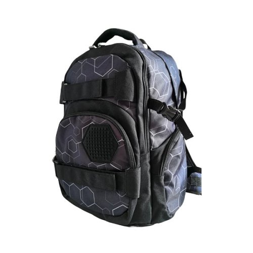 Školský batoh je vhodný od 4. triedy ZŠ, pre deti od výšky 140 cm. Batoh je vyrobený z vodeodolného polyesterového materiálu a silikónu čo umožňuje veľmi ľahkú údržbu. Stačí len utrieť vlhkou handričkou alebo hubkou. Batoh má tri samostatne uzatvárateľné priestranné oddelenia. V hlavnom vrecku, ktoré sa nachádza najbližšie chrbtu, sa nachádza polstrované vrecko slúžiace na notebook do veľkosti 15”, toto vrecko je uzatvárateľné suchým zipsom. Veľké oddelenie je vhodné pre knihy, zošity a iné dokumenty formátu A4. V prostrednom oddelení je menší organizér na drobné veci a denné potreby. Do tohto oddelenia sa zmestia zošity o veľkosti A4. Predné vrecko je formátu A5. Po oboch stranách plecniaka sú malé vrecká uzatvárateľné zipsom. Do týchto vreciek je možné umiestniť fľašu, alebo akékoľvek iné drobnosti, ktoré chcete mať po ruke. Pre komfortné používanie má batoh ergonomicky tvarovaný polstrovaný chrbát a posuvný chrbtový systém umožňujúci nastavenie optimálnej polohy popruhov vzhľadom k výške dieťaťa. Popruhy sú široké a polstrované, aby sa nezarezávali. V prednej časti majú dĺžkovo nastaviteľnú hrudnú pracku, aby deťom nepadali z ramien. V dolnej časti je bedrová pracka, ktorá pomáha batoh odľahčiť v prípade, že je veľmi ťažký. Pre pohodlné prenášanie v ruke je batoh vybavený polstrovaným úchytom, na zavesenie slúži pevné pútko. Na prednom vrecku je umiestnený unikátny šesťuholníkový silikónový PIXIE CREW creative panel™ čiernej farby. Máte k dispozícii 83 pozícií pre nekonečné množstvo motívov na každý deň vďaka PIXIES (pixelom), ktoré môžete kedykoľvek zložiť a vymeniť za iné. Ku každému batohu zadarmo prikladáme balíček malých PIXIES (pixelov) a mini galériu na inšpiráciu. Rozmery balenia: 43 x 33 x 16 cm. Vek: 9+