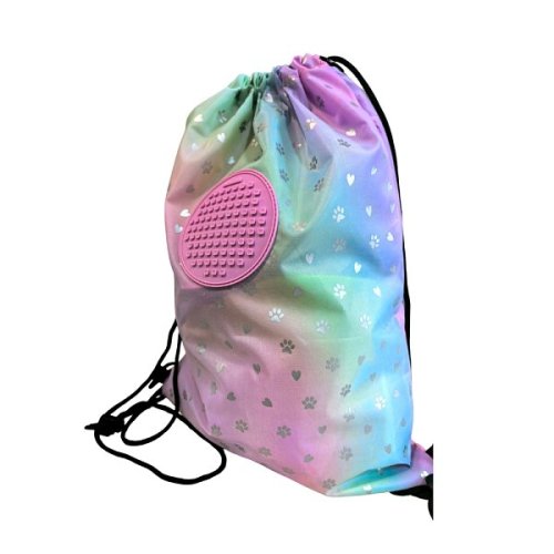 Jednoduchý vak na chrbát zvaný aj Gymsack vyrobený zo 100% polyesteru je veľmi obľúbený u detí, tínedžerov i mladých ľudí. Je ideálny na prezuvky, telocvik, veci do fitka, do práce alebo na bicykel. Má dlhú zaťahovaciu šnúrku, preto sa dá pohodlne nosiť pripevnený k aktovke, cez rameno alebo ešte lepšie na chrbte a stáva sa tak moderným doplnkom. Praktický je aj vďaka použitému materiálu, ktorý je jednoduchý na údržbu a je ľahko zložiteľný a skladný. Na prednej strane je umiestnený unikátny silikónový PIXIE CREW creative panel TM ružovej farby. Kruh je s priemerom 9 cm ak dispozícii máte 86 bodov pre nekonečné množstvo motívov na každý deň vďaka PIXIES (pixelom), ktoré môžete kedykoľvek zložiť a vymeniť za iné. Ku každému vaku zadarmo prikladáme balíček približne 50 ks malých PIXIES (pixelov). Rozmery balenia: 43 x 32 x 1 cm. Vek: 6+